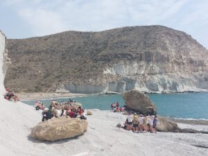 El alumnado de 1º de bachillerato ha realizado una ruta de senderismo por el parque natural de Cabo de Gata. Partiendo de Agua Amarga han podido visitar algunas de las playas más icónicas del parque, como es el caso de la Cala de Enmedio.