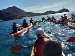 La semana del 22 al 26 de septiembre nos visitó el alumnado de intercambio con Suecia gracias al programa Erasmus del Centro. Nuestros alumnos y alumnas de 2º de Bachillerato los acogieron y acompañaron en actividades como la visita a la UAL, con un taller especial organizado por Emprende UAL, o la actividad de kayak en Cabo de Gata y la visita a Crisol donde el alumnado pudo ver la evolución de cultivos bajo plástico
